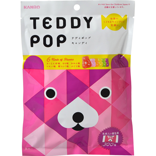 カラフルなテディが楽しい、おしゃれなアソートキャンディ。「TEDDY POP」の売上の一部はSave the Children に寄付され、世界中の子供たちに笑顔を届けます。